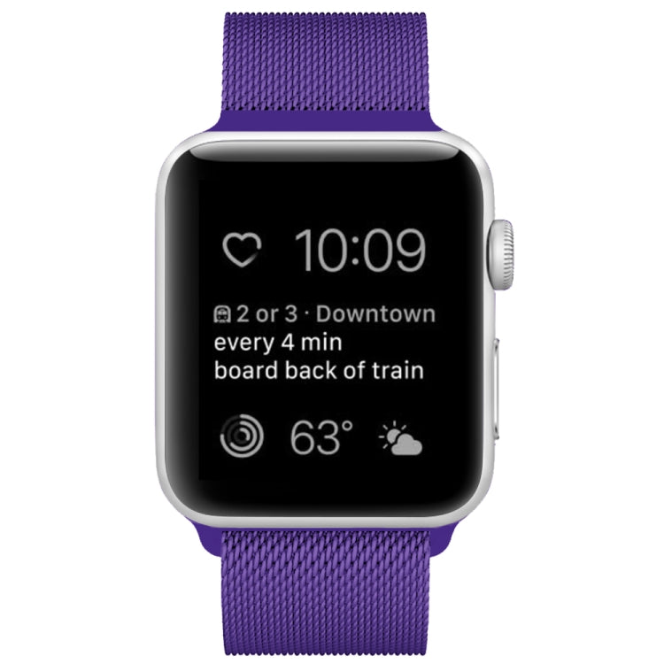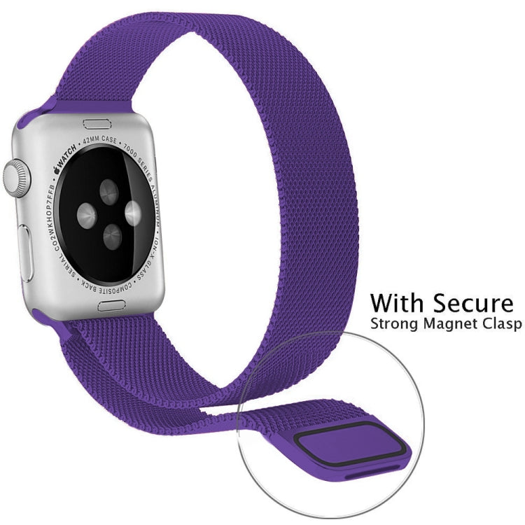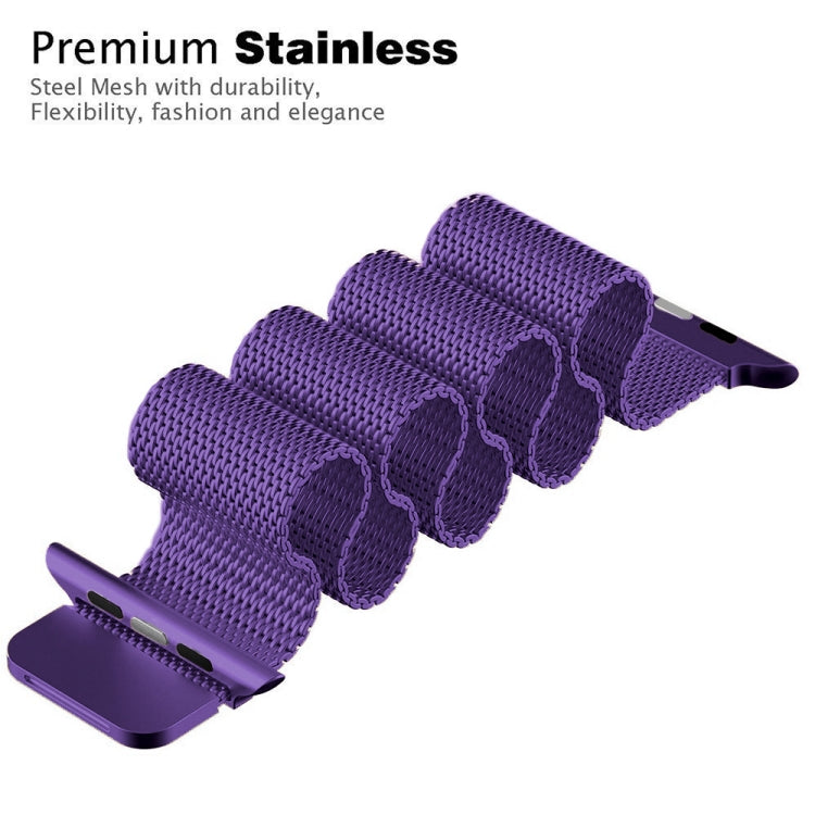 For Apple Watch Series 9&8&7 41mm / 6 & SE & 5 & 4 40mm / 3 & 2 & 1 38mm Milanese Loop Magnetic Stainless Steel Watch Band(Bright Purple)
