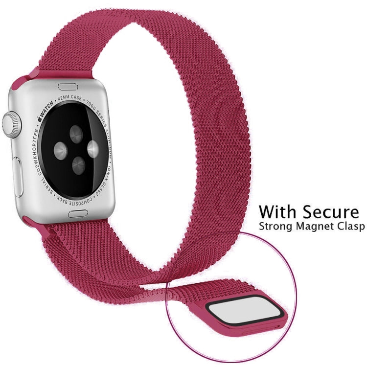 For Apple Watch Series 9&8&7 41mm / 6 & SE & 5 & 4 40mm / 3 & 2 & 1 38mm Milanese Loop Magnetic Stainless Steel Watch Band(Tea Red)