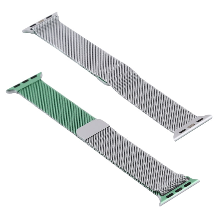 For Apple Watch Series 7 45mm / 6 & SE & 5 & 4 44mm / 3 & 2 & 1 42mm Milanese Gradient Stainless Steel Watch Band(Green+Silver)