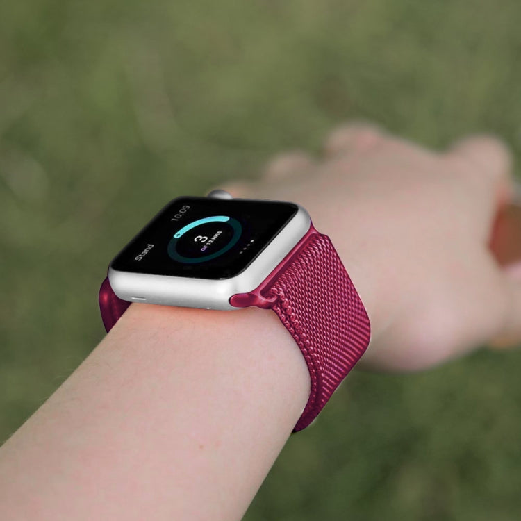 For Apple Watch Ultra 49mm&Watch Ultra 2 49mm / Series 9&8&7 45mm / 6 & SE & 5 & 4 44mm / 3 & 2 & 1 42mm Milanese Loop Magnetic Stainless Steel Watch Band(Tea Red)